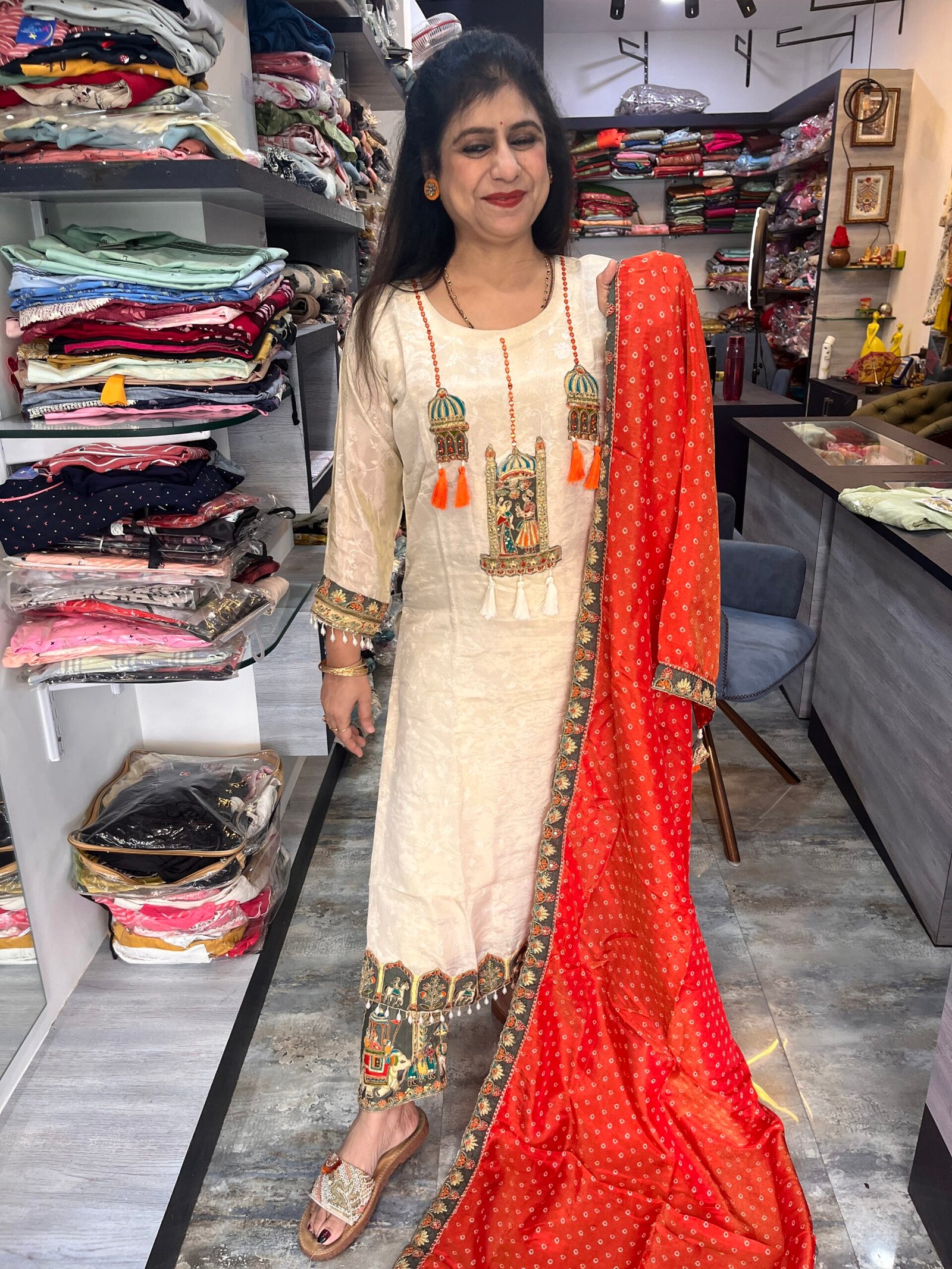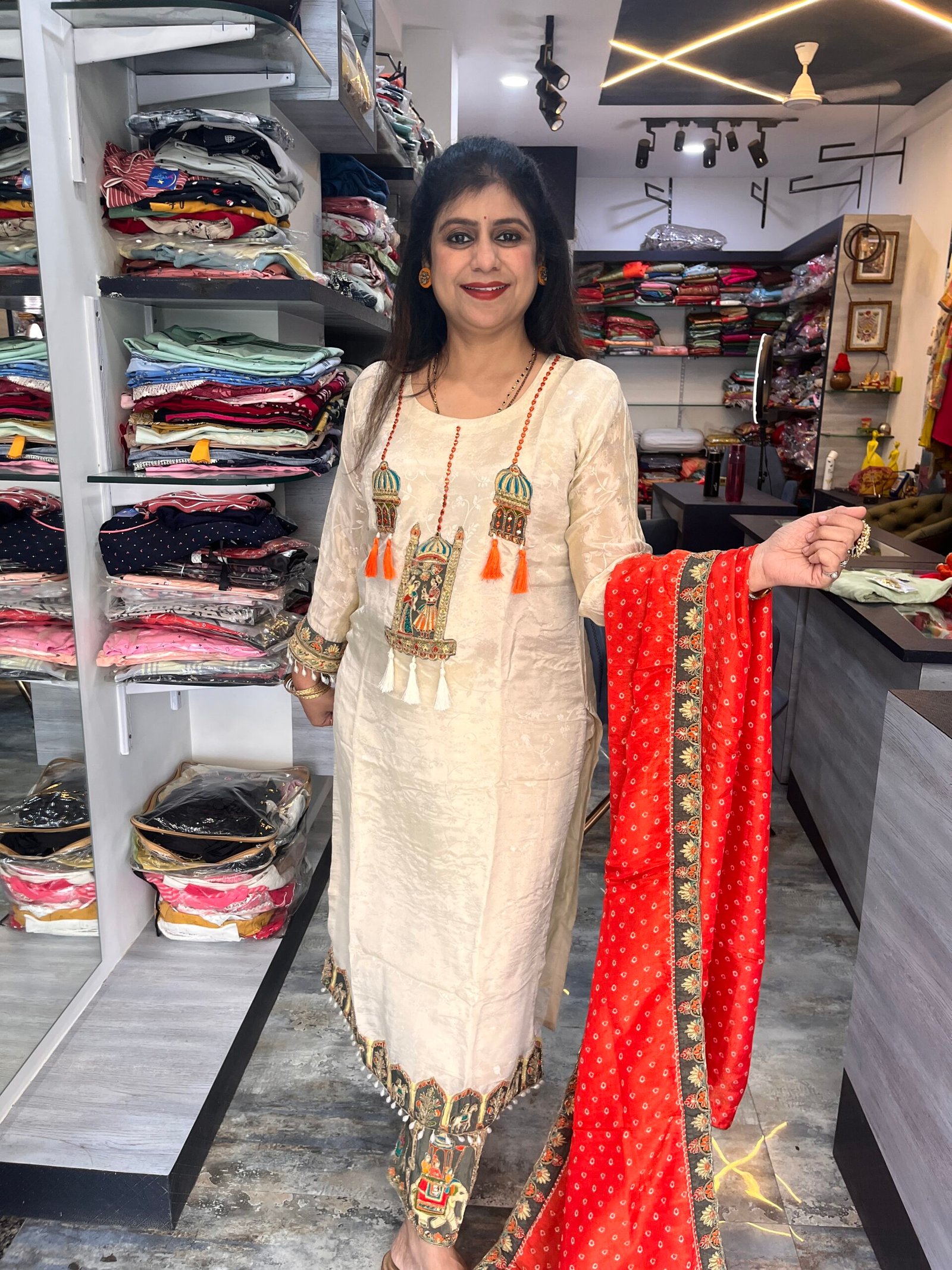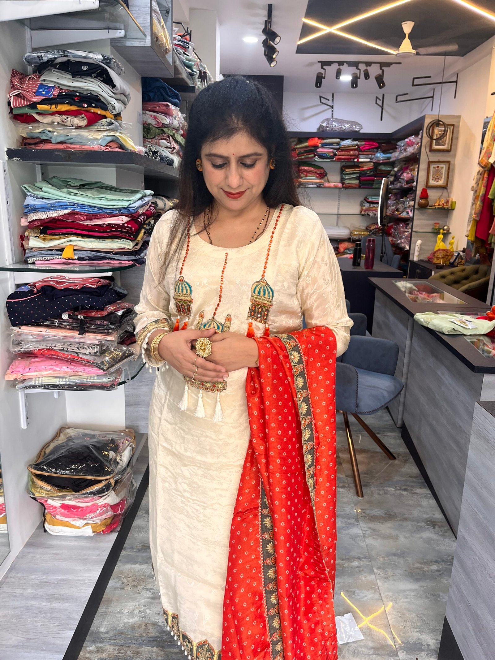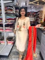 Be the first to review “Cream White Printed Regular Cotton Suit for Women”