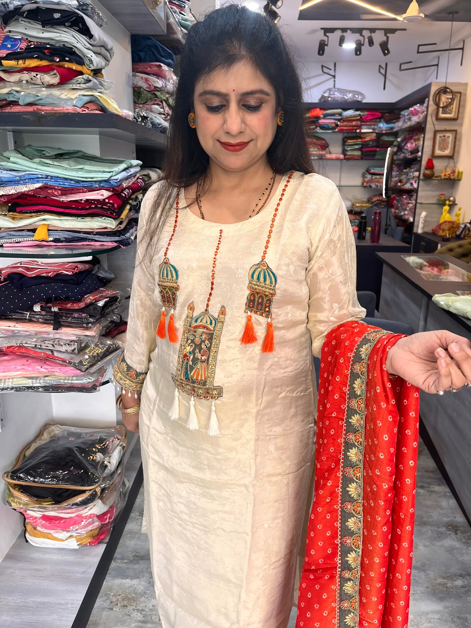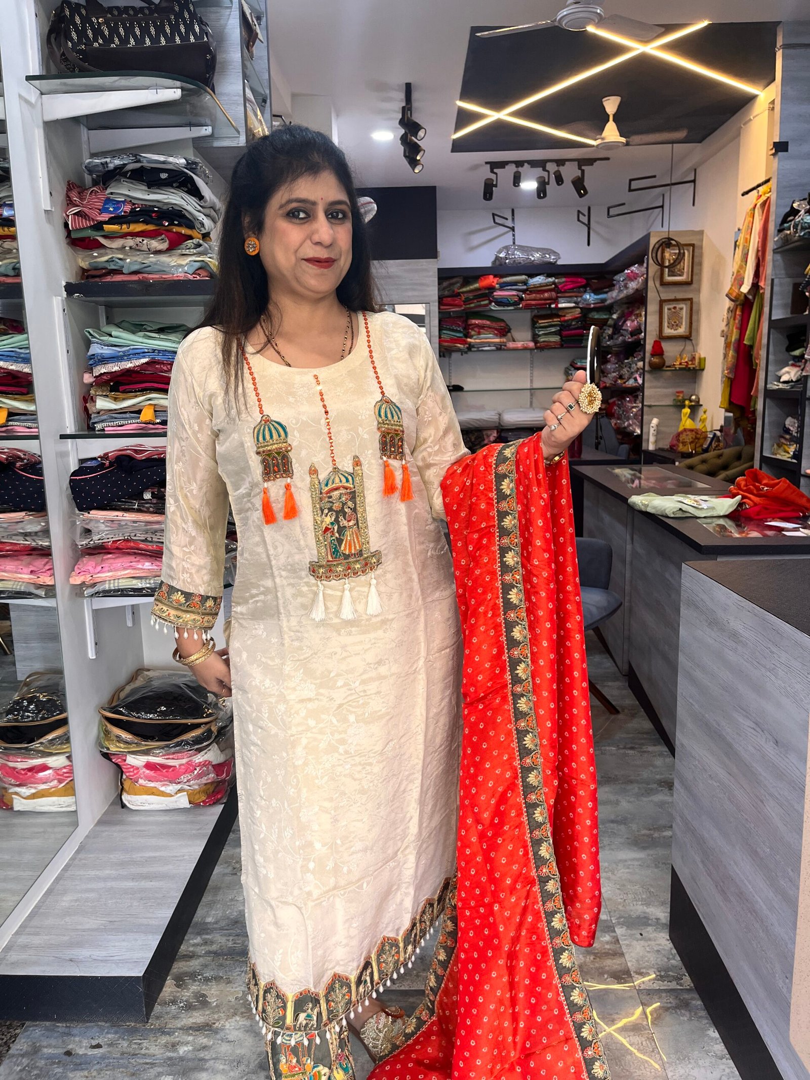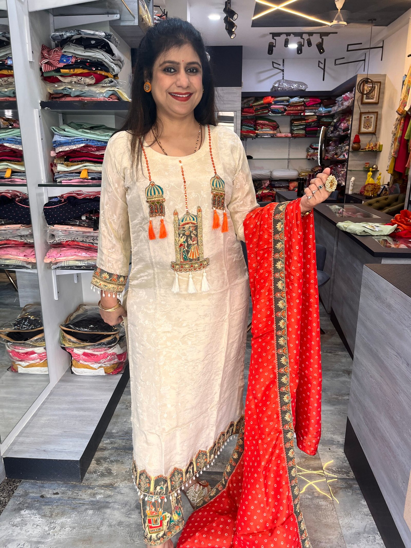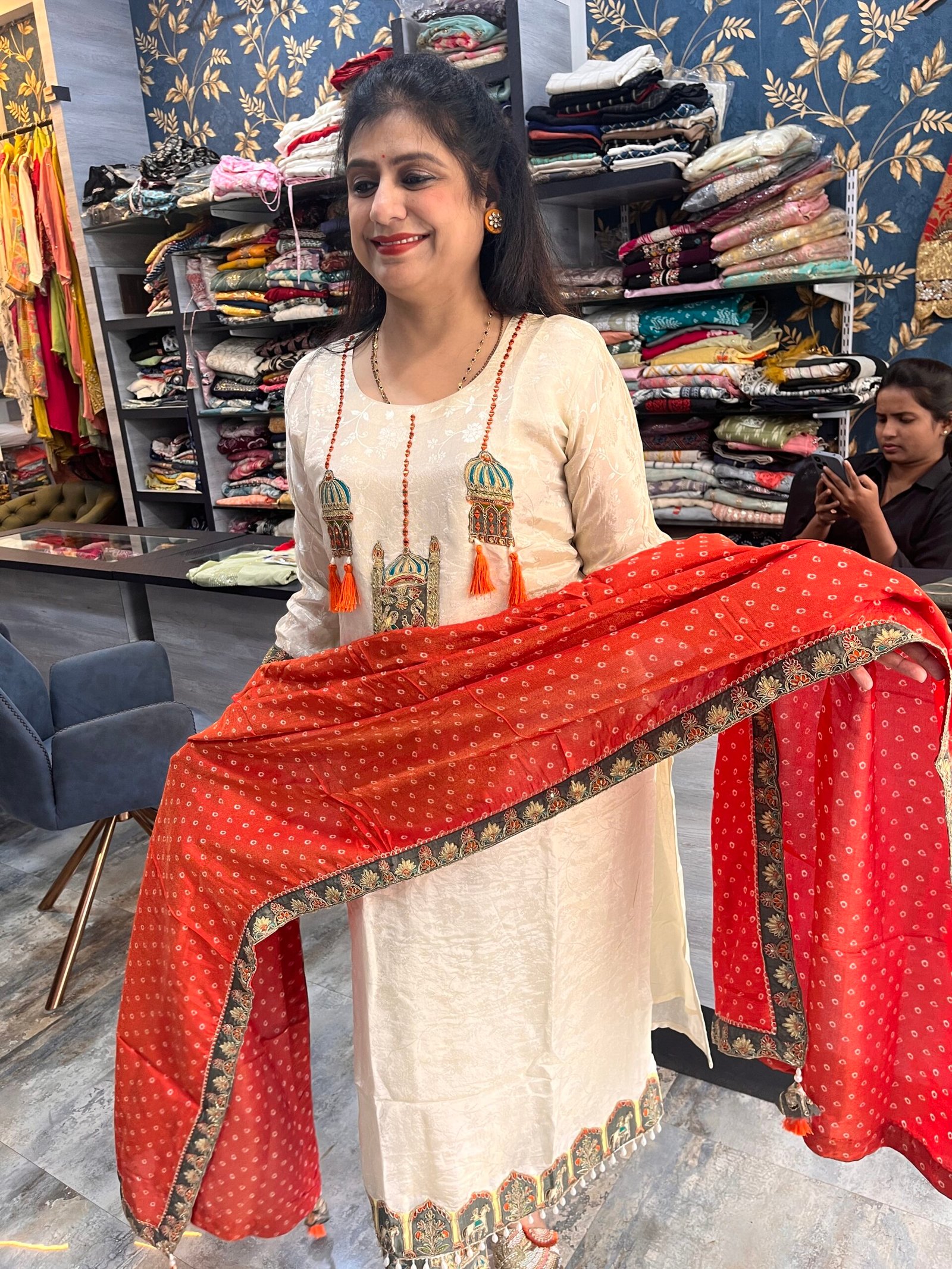Be the first to review “Cream White Printed Regular Cotton Suit for Women”